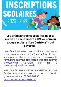 Vous allez bientôt emménager à Cuvry, n’oubliez pas d’inscrire votre (vos) enfant(s) au groupe scolaire les Cerisiers pour la rentrée.